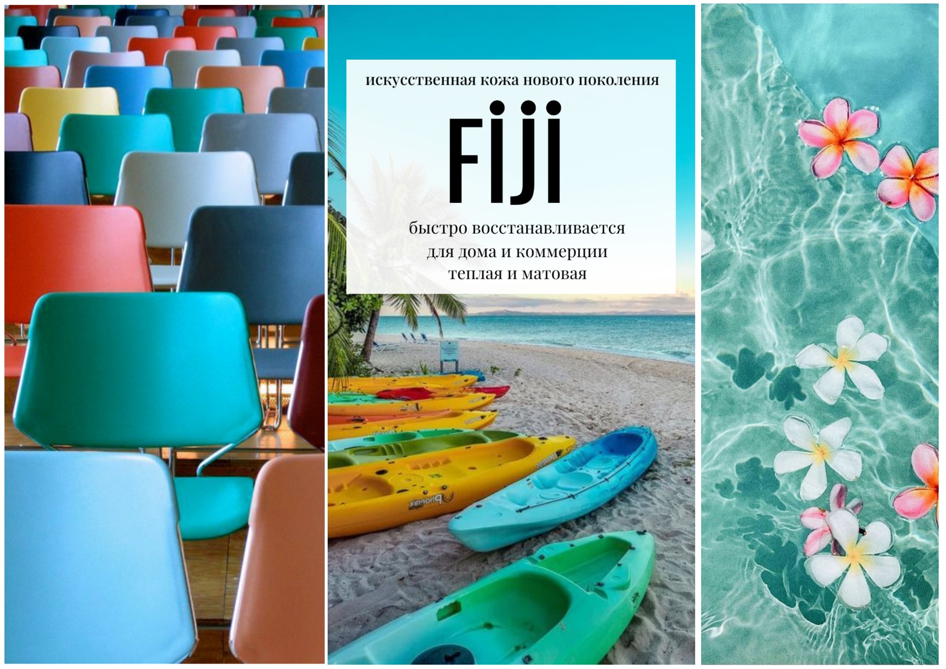Fiji – это южные острова, жаркие, тропические, но очень красивые. С бирюзовыми лагунами, лазурным небом, песчаными пляжами и райскими фруктами. Именно такие цветовые впечатления мы постарались воплотить в нашей новой коллекции искусственной кожи с одноименным названием. Ее цветовая гамма включает все эти незабываемые оттенки, райских тропических островов, диковинных птиц и плодов. Но это не единственное преимущество коллекции Fiji!