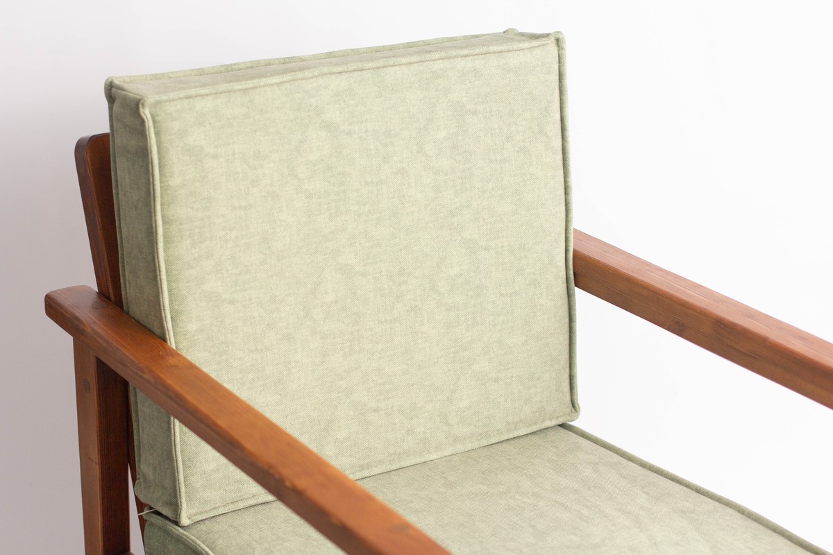 Подушки для сидения выполняются по схожим принципам: наполнитель (в этом случае плотный поролон), дополняется более мягким синтепоном, далее все это собирается во внутренний чехол из экологичного легкого материала, и только после этого надевают плотный чехол из мебельной, уличной или универсальной ткани.